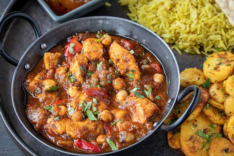 Cooked Chicken Breast (30%) (Chicken, Water, Corn Starch), Tomato, Onion, Water, Red Pepper, Chickpeas (Chickpeas, Water, Salt), Rapeseed Oil, Tomato Puree, Mango Pickle (Mango, Salt, Corn Oil, Chilli, MUSTARD, Fenugreek, Turmeric, Cumin, Fennel, Pepper, Asafoetida, E260 Acetic Acid), Sugar, Ginger, Garlic, Lemon Juice, Cornflour, Herbs, Salt, Garam Masala (Pepper, Cinnamon, Clove, Cardamom, Star Anise, Mangosteen, Mango Powder, Paprika, Nutmeg, Bay Leaf, Coriander), Paprika, Coriander, Cumin, Turmeric, Chilli, MUSTARD Seed, Chilli Puree, Cardamon